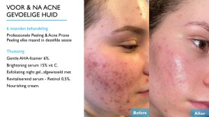 De huid word aanmerkelijk egaler. De peelings verminderen het risico op acné-littekens en revitaliseren de huid.