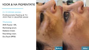 De anti-pigmentatiepeeling dringt diep door in de pigmentcellen van de huid en zorgt voor een zachte maar effectieve vermindering van ongewenste verkleuring.